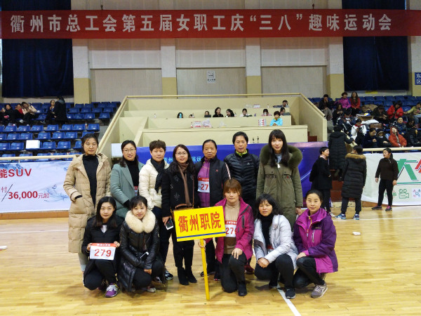 3月6日,由衢州市总工会举办的2018年庆“三八”趣味运动会在衢州市体育馆举行。来自全市各系统的38支代表队参加了比赛。我校女教职工凭借良好的表现,获得了总分第八名,三等奖的好成绩。