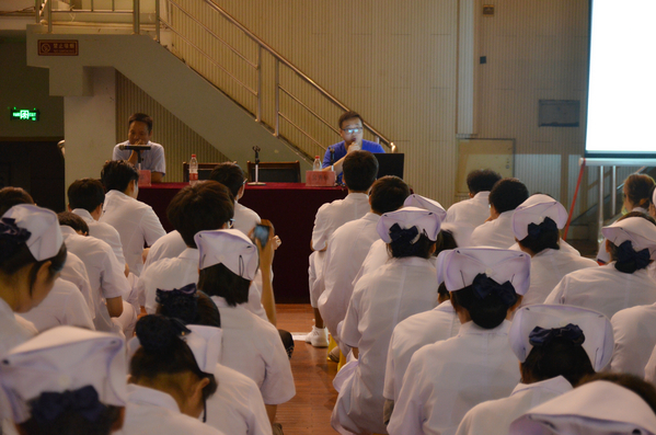 6月6日晚,医学院召开16级护理助产专业顶岗实习专题讲座暨实习动员大会。会议分专题讲座和实习动员大会二部分,浙江大学医学院附属第一医院护理教育中心王薇主任受邀作顶岗实习专题讲座。医学院院长姚水洪、党总支书记余文富、副书记吴秀仙、16级全体班主班、片区管理老师以及2016届护理助产596名学生参加了本次大会,大会由余文富主持。