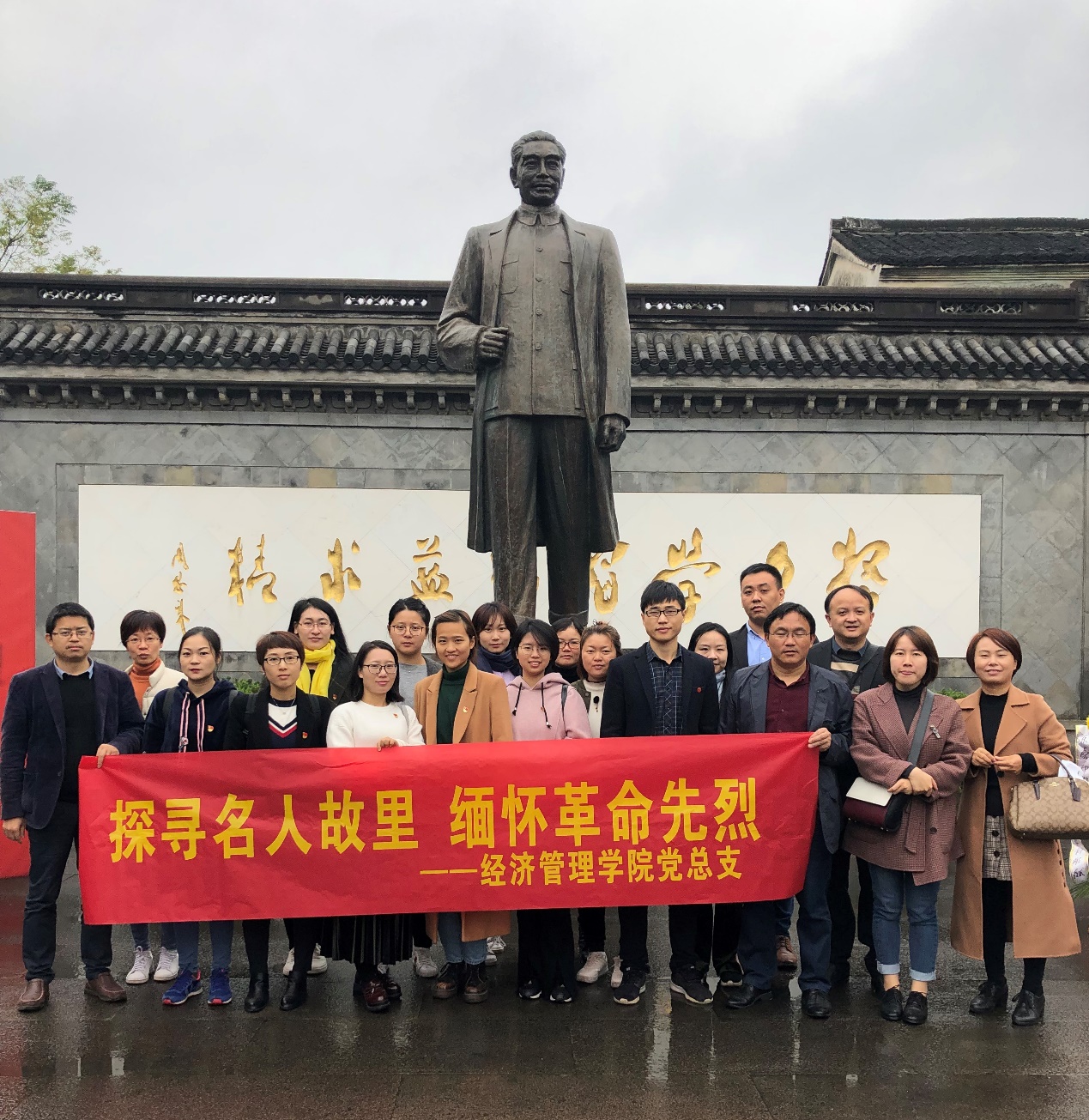 为贯彻落实党的十九大精神,更好地进行爱国主义主题教育,进一步提高党员党性,创新主题党日活动形式,丰富党日活动内涵。11月16-11月17日,经济管理学院党总支组织教师党员到浙江绍兴开展“缅怀革命先烈,重温党的历史”主题党日活动,参观了鲁迅故里和周恩来祖居。