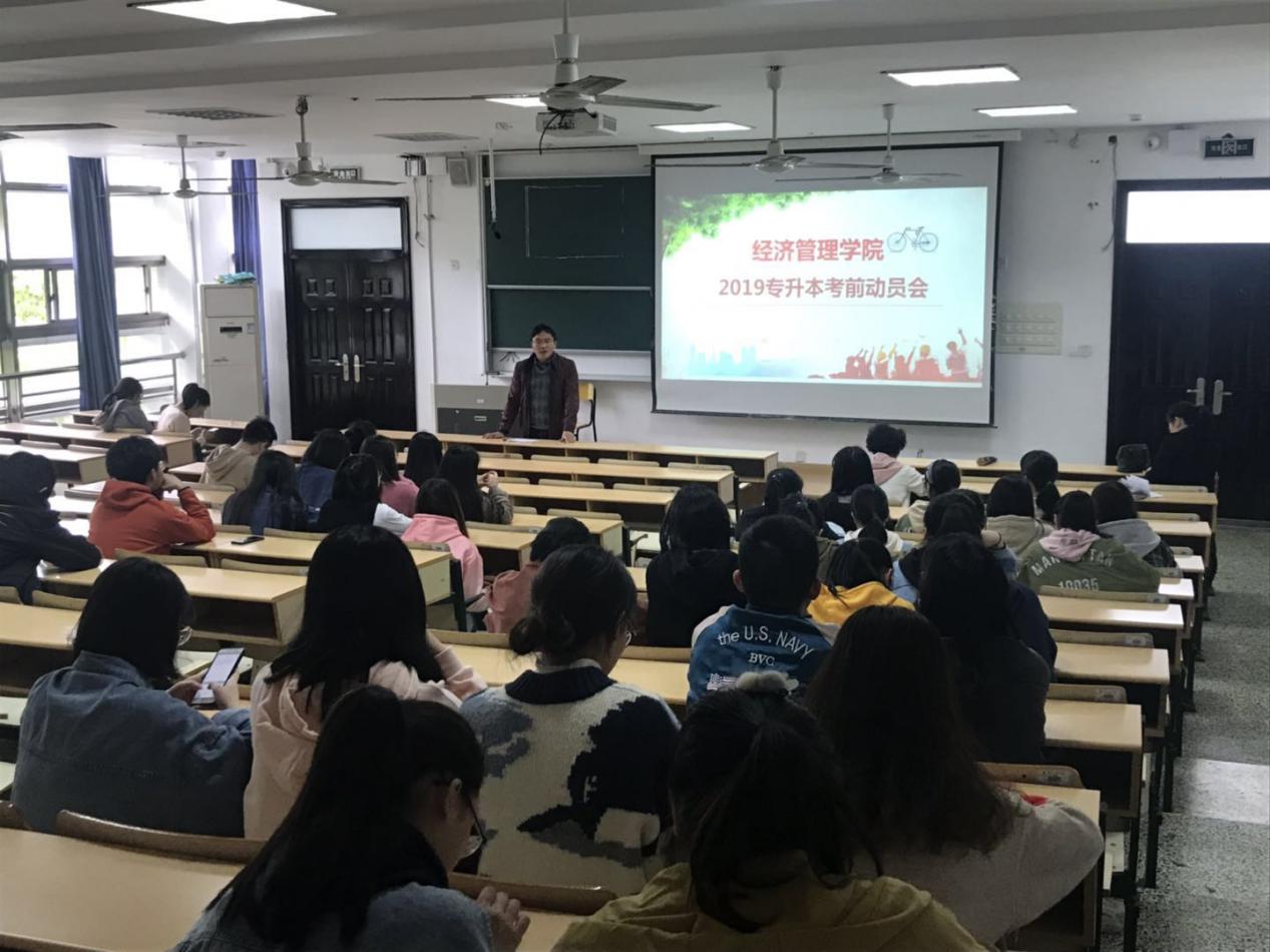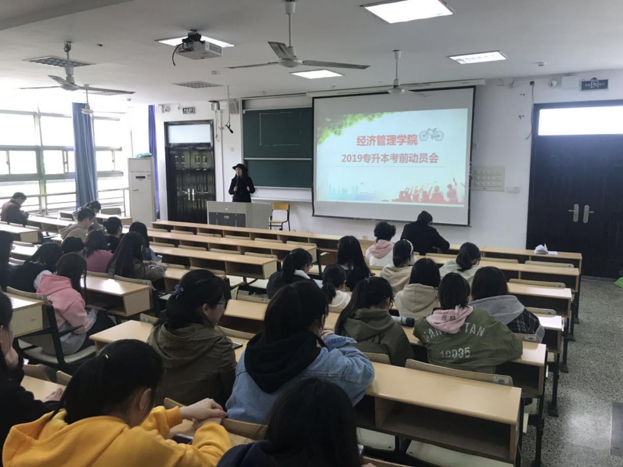 专升本考试的脚步越来越近,为激励经管学子以良好的精神面貌面对考试,4月11日中午,经济管理学院在阶西2-1召开专升本考试考前动员大会,党总支副书记覃龙飞、毕业生班主任、辅导员何昊以及2019届报考专升本的学生参加。