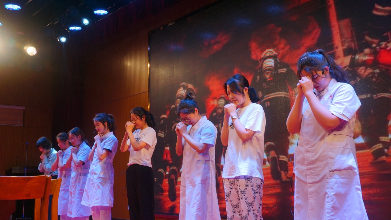 为了这次护理心理情景剧比赛,从4月份就开始演员的选拔、剧本的筛选以及紧锣密鼓的排练,同时安排专业老师参与到每一个剧目的指导,力争“情景剧”更贴近医院的真实环境,演绎医护人员真实的工作生活。通过工作情景再现,“演员们”一丝不苟的表演,不仅给观众带来了笑声与泪水,更是让同学们明白无论是在医院面对病人还是在抗震救灾现场处理突发事件,护士们一样奉献着“仁爱、大爱”,都无愧于“白衣天使”的美誉。