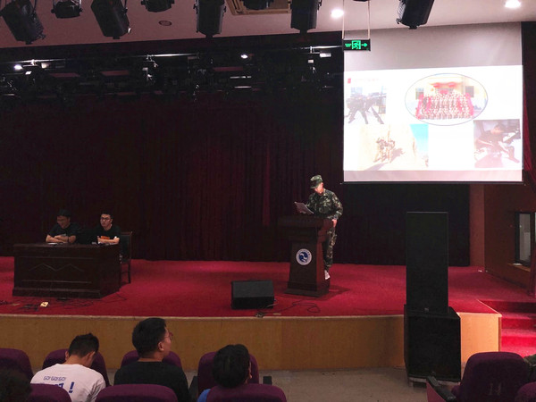 随后经管学院三名大学生退伍军人代表徐林鑫、徐磊、鲁威韬分享了自己在新兵连、服役部队的诸多日常生活:叠被子,野外拉练,阅兵,夜间紧急集合……强调自己在这过程中得到的锻炼、磨炼的意志、养成的习惯,直到今天依然受益匪浅,鼓励同学们入伍从军,到边疆、上海岛,冲云霄、入五洋,摸摸钢枪、  开开战车,过一过军歌嘹亮、军号响亮的生活。