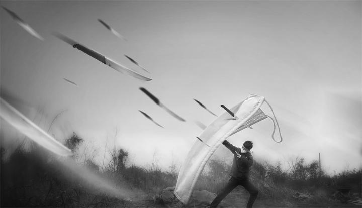 疫情期间,口罩就像是手中的盾牌,可以有效的抵抗病毒!病毒就像是这些来势汹汹的飞刀一般势不可挡。可时间久了口罩也有被攻破的一天!所以我们最好待在家里,不给病毒有进攻的机会。——赵伟冰 摄