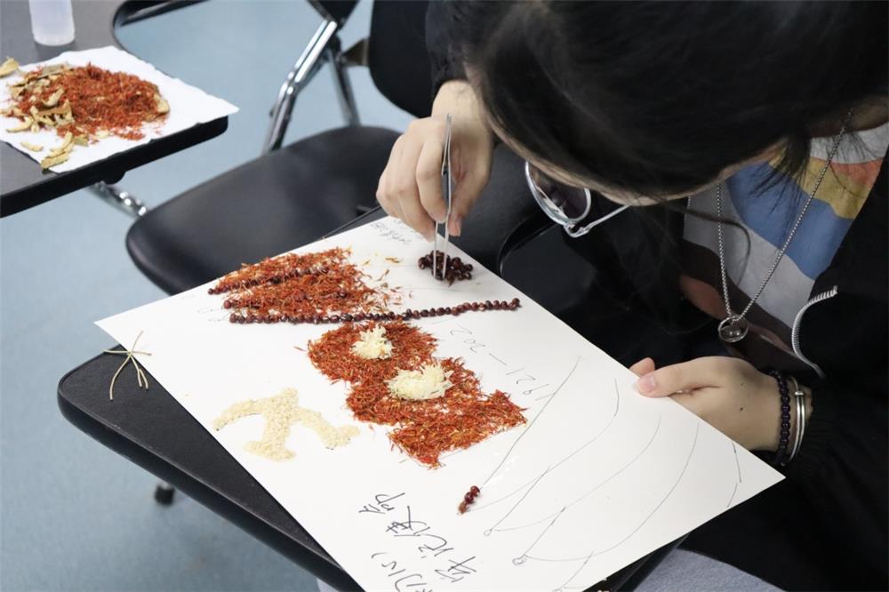 通过中药材创意画的生动展示,一味味中药材从枯燥无味中“活”起来,在尽显中医药文化魅力的同时,让党史学习教育贯穿学习生活之中。