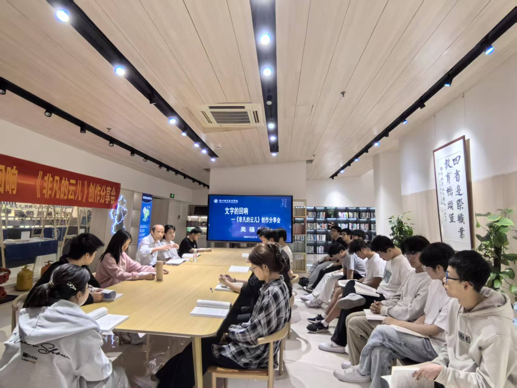 3月27日下午,图书馆内洋溢着浓厚的文学氛围,一场以“文学的回响”为主题的创作分享会正在举行。图书馆馆员吴福泰携散文集《非凡的云儿》,与五十余位师生展开了一场跨越影视与文学、生命与理想的深度对话。